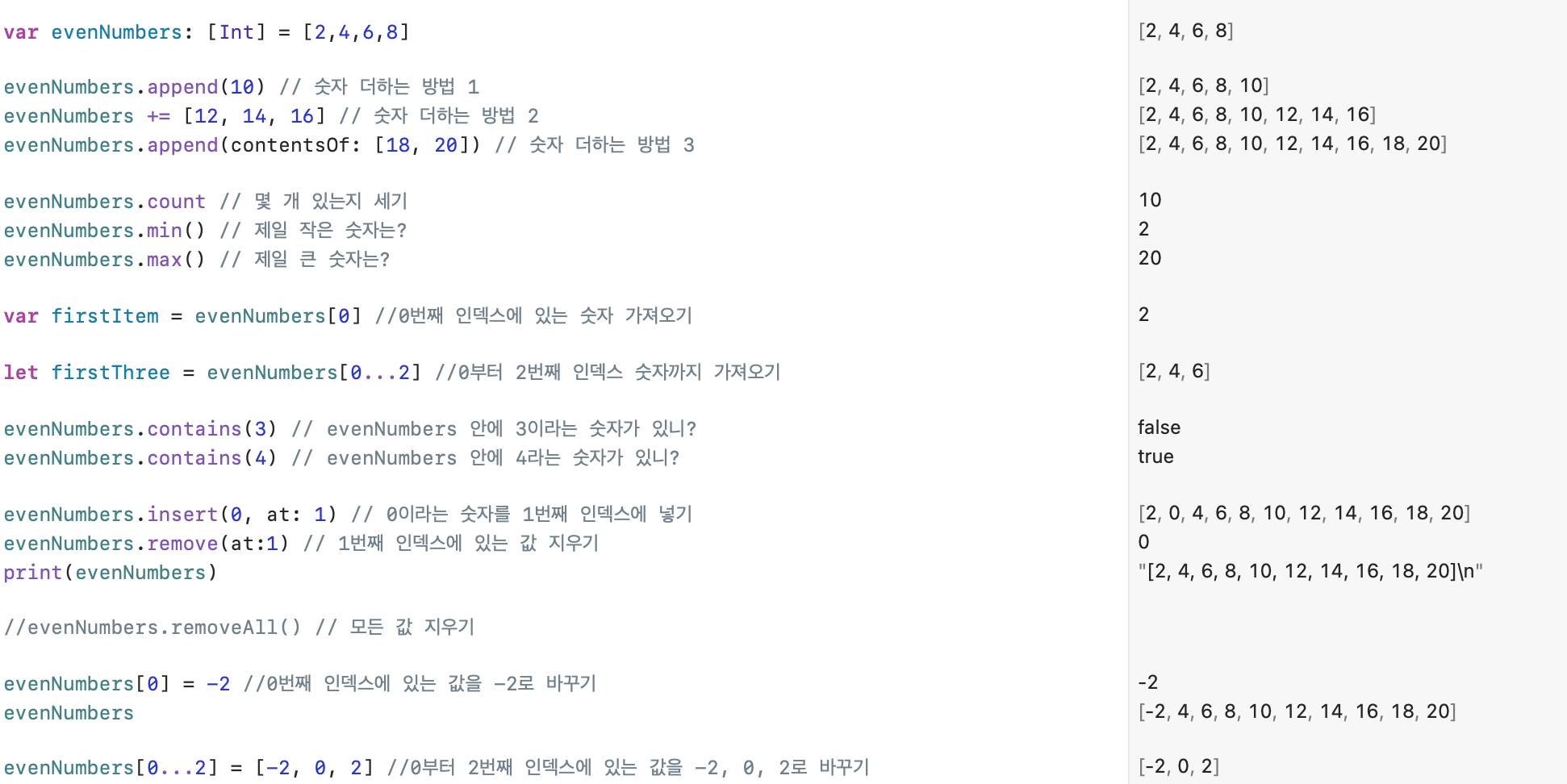 Swift는 값의 저장하기 위해서 arrays, sets, dictionaries 이렇게 3가지의 콜렉션 타입을 제공한다.